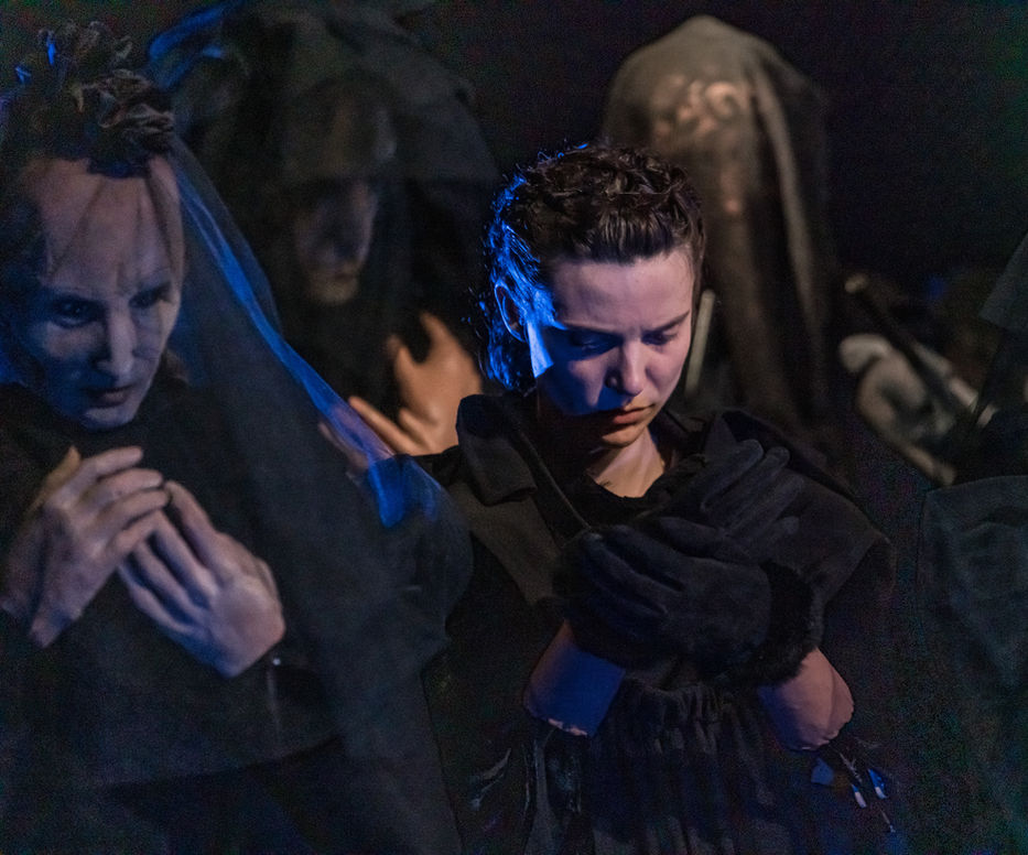 La notion de masse est primordiale. Ce sont les masses qui « maîtrisent » les mécaniques de la violence au sein de la pièce. Job est au centre, mais Job est sujet de craintes, de reproches, de violence, d’incompréhensions, de rejet et d’indifférence… il existe parce qu’autour de lui, se déploient forces brutales, intérêts vitaux et débats fiévreux. Levin questionne ces dynamiques en instaurant une gradation de la violence par et pour les hommes, avec humour, distance et cynisme. Nous le rejoignons par ici, avec la Marionnette.